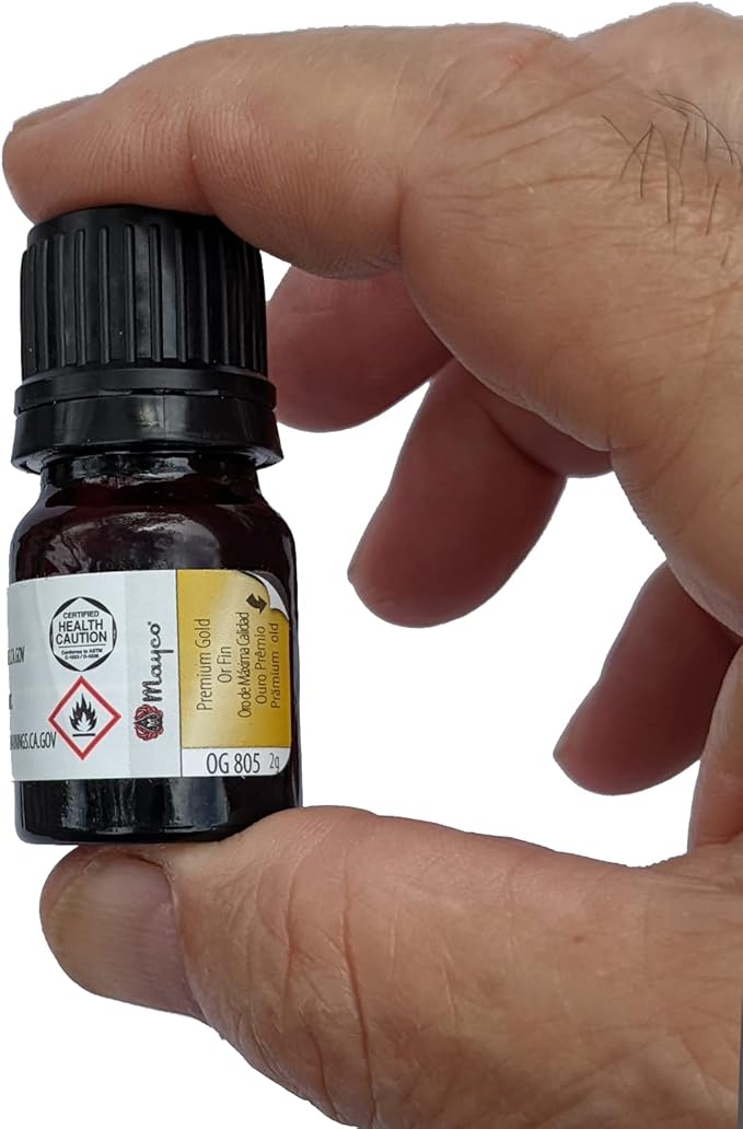 I’ve worked with two types of gold lusters for ceramics: Bright Gold (7% gold) and Premium gold (11% gold). The latter is more expensive, about $50+ for a tiny bottle, but is more forgiving.